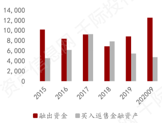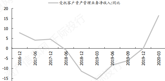 自营业务:从资产端来看,券商总资产中45%以上为自营投资类资产,包括固收、股票、基金、信托及资管计划、衍生品等,其中绝大部分投向固收资产(2019年自营投资占比在65%左右)。自营仓位变动:股票市场表现较好时,券商自营会加仓权益类规模;相反,会减仓权益类资产规模。