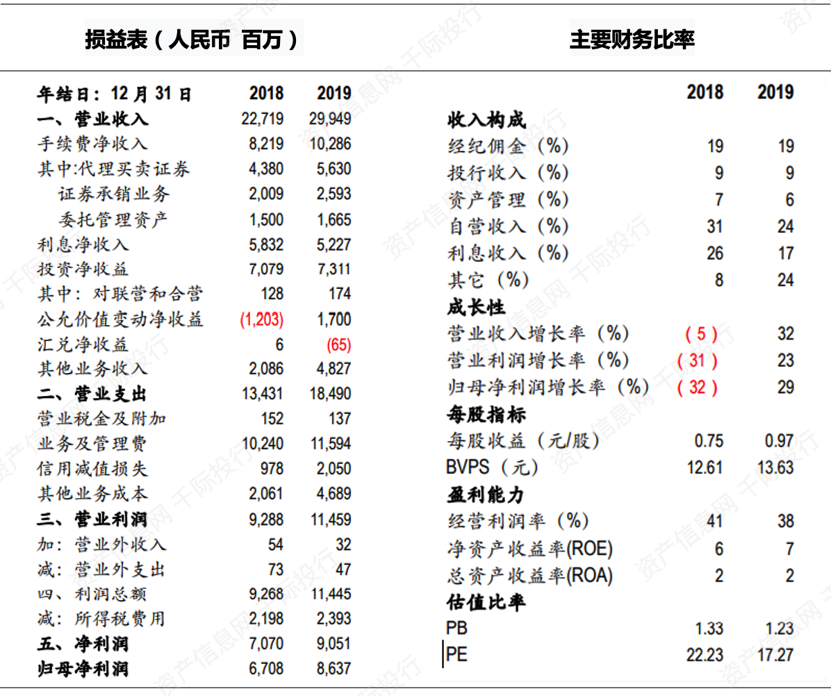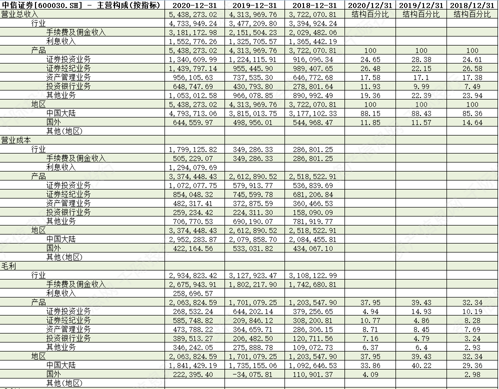 (1) 中信证券[600030.SH] :公司是国内规模最大的证券公司。主营业务范围为:证券经纪;证券投资咨询;与证券交易、证券投资活动有关的财务顾问;证券承销与保荐;证券自营;证券资产管理;融资融券;证券投资基金代销;为期货公司提供中间介绍业务。中信证券在若干业务领域保持或取得领先地位。公司紧紧围绕服务实体经济这一个中心,进一步完善融资安排者、财富管理者、交易服务与流动性提供者、市场重要投资者和风险管理者五大角色,不断重塑并巩固核心竞争力。公司依托第一大股东与中信银行、中信信托、信诚人寿保险等公司共同组成中信控股之综合经营模式,并与中信国际金融控股共同为客户提供境内外全面金融服务。