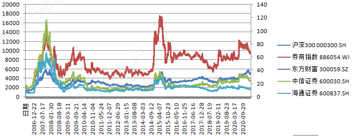 券商板块具有高度周期性特征,这种周期性有别于受经济周期影响而著称的周期股,券商股的周期性来自监管与市场影响,作为高度受监管行业,监管的放松与收紧影响着券商业务的扩张和收缩,而券商又是做资本市场的生意,市场的冷热交替牛熊转换亦会显著影响券商业绩。当监管政策放松叠加市场行情向上二者共振时,券商板块往往产生明显超额收益,券商板块历史上的两轮大行情无不例外。
