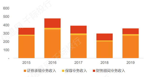 图 2015-2019年头部券商投行业务收入对比(单位:亿元)