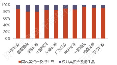 近年来证券行业向“重资产化”转型,资金实力与投资能力成为了券商的核心竞争力。券商自营配置仍以固收类为主。