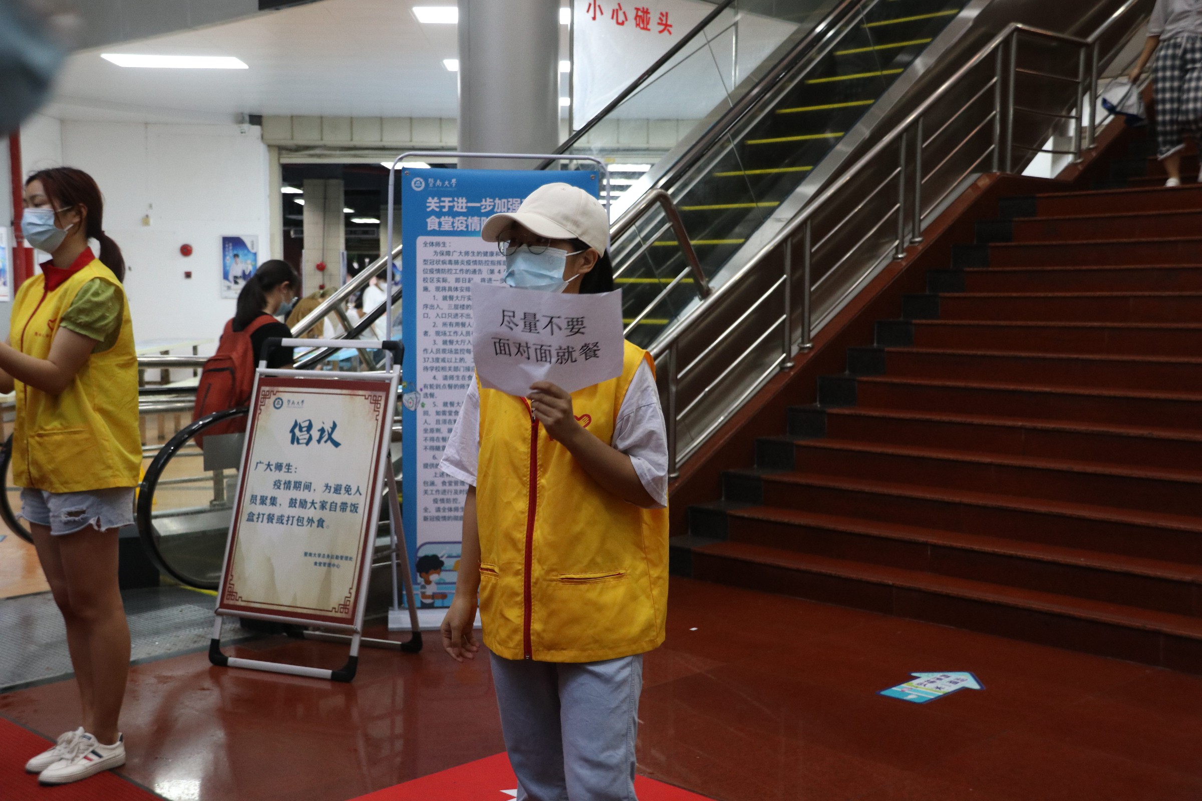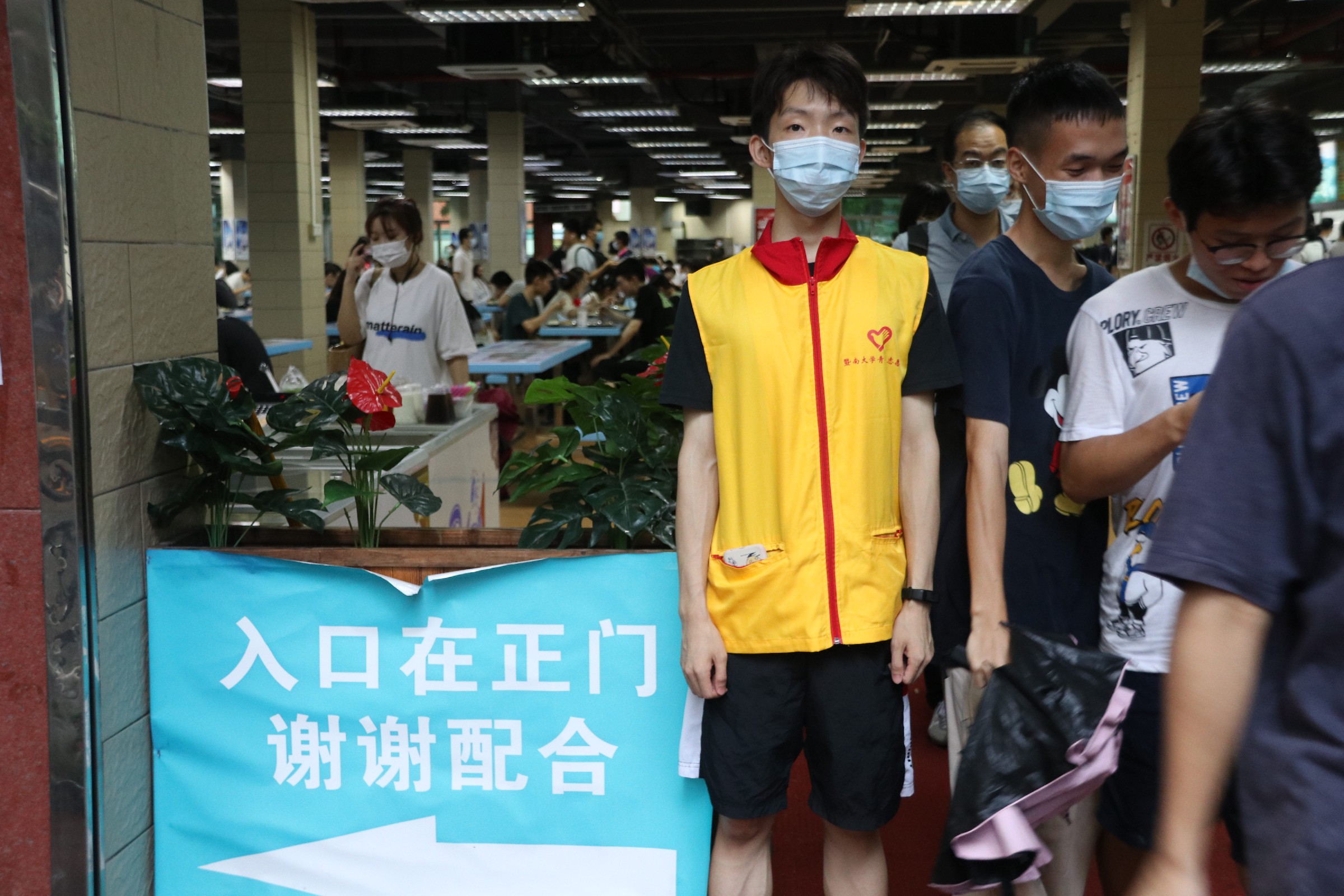 校园里的防疫措施随处可见,例如校内人流密集的食堂实施了单入口进出的防疫管理,每天饭点都有坚守在门口的志愿者们。志愿者们手拿防疫标语,细心检查着每位出入的同学是否有佩戴口罩。他们尽自己的绵薄之力来保障同学们的用餐安全,志愿者同学们辛苦了~