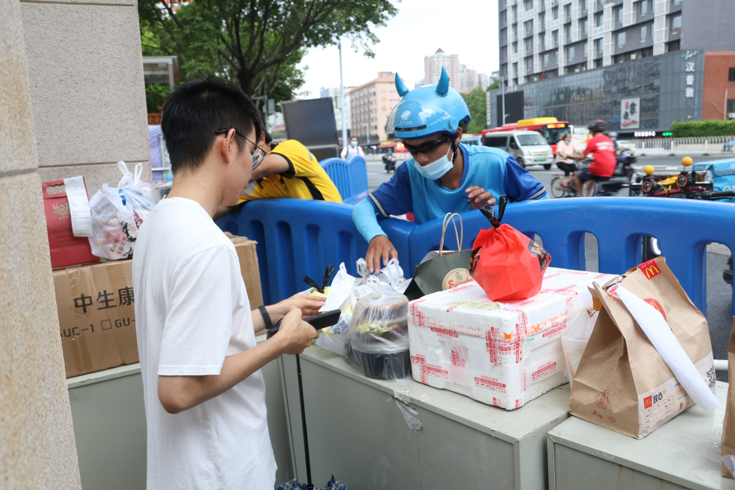 其他人不能进来,外卖小哥当然也不例外啦!但外卖小哥进不来,就得辛苦同学们自己跑一趟校门取餐啦!从国内疫情开始,相信各大高校的门口都出现了黄黄蓝蓝的身影,这些都是为同学们速递美食的“天使”们。但为了防止外来人员在校园内随意进出,外卖小哥们只能被迫阻挡在门外啦,但是校方还是贴心的在门口为大家准备了摆餐的桌子,在减少双方密切接触的同时,小哥们也不用等的那么着急啦,毕竟宿舍离校门口还是有一段的距离。