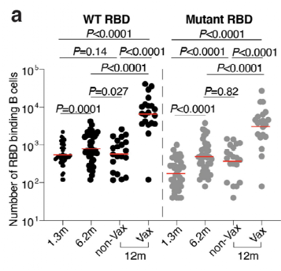 现在过去了5个月,最新21年6月份这篇文章则是对于在感染新冠病毒一年后记忆B细胞以及其分泌的针对SARS-CoV-2抗体存在情况的后续调查。