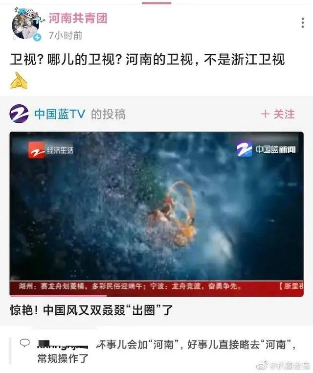 从春节晚会的《唐宫夜宴》到乘胜追击的元宵奇妙夜,再到端午特别节目,今年河南卫视已经凭借“国风新奏”三次出圈。前天,#河南卫视杀疯了#登顶微博热搜榜。今天,《祈》的片段被浙江卫视打上“中国蓝TV”logo进行传播,引发网友众怒与河南共青团的喊话,再次成为微博热门话题。