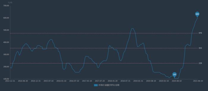 6月8日,龙蟒佰利发布钛白粉调价函通知称,根据钛白粉市场需求情况、原材料价格上涨等因素,经公司价格委员会研究决定,自2021年7月1日起,公司各型号钛白粉(包括硫酸法钛白粉、氯化法钛白粉)销售价格在原价基础上对下游各类客户上调500元人民币/吨。