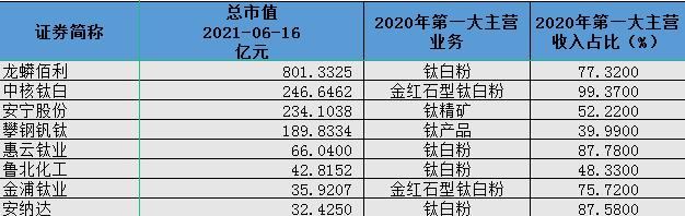 需要指出的是,与其他行业不同的是,钛白粉相关上市公司整体业务集中度较高,在钛白粉、钛精矿价格上涨,行业景气度系统性提升的背景下,钛白粉行业公司2021年利润弹性也会表现极为突出。