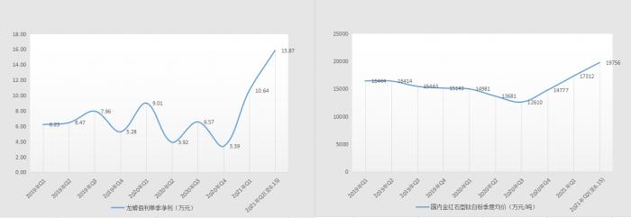 这成为了推动相关上市公司盈利能力提升的关键,期间国内行业龙头龙蟒佰利单季净利润便连续创出历史最佳水平,盈利从2020年Q4的3.39亿元增至今年Q1的10.64亿元。