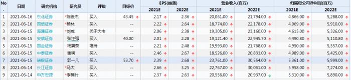 瑞银证券、长江证券预期值更是达到53.61亿元和59.58亿元,所对应的每股收益为2.39元和2.66元。