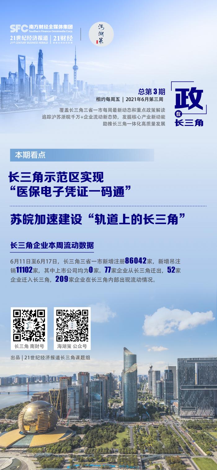 6月11日至6月17日,长三角三省一市新增注册86042家,新增吊注销11102家,其中上市公司均为0家。77家企业从长三角迁出,52家企业迁入长三角,209家企业在长三角内部出现流动情况。