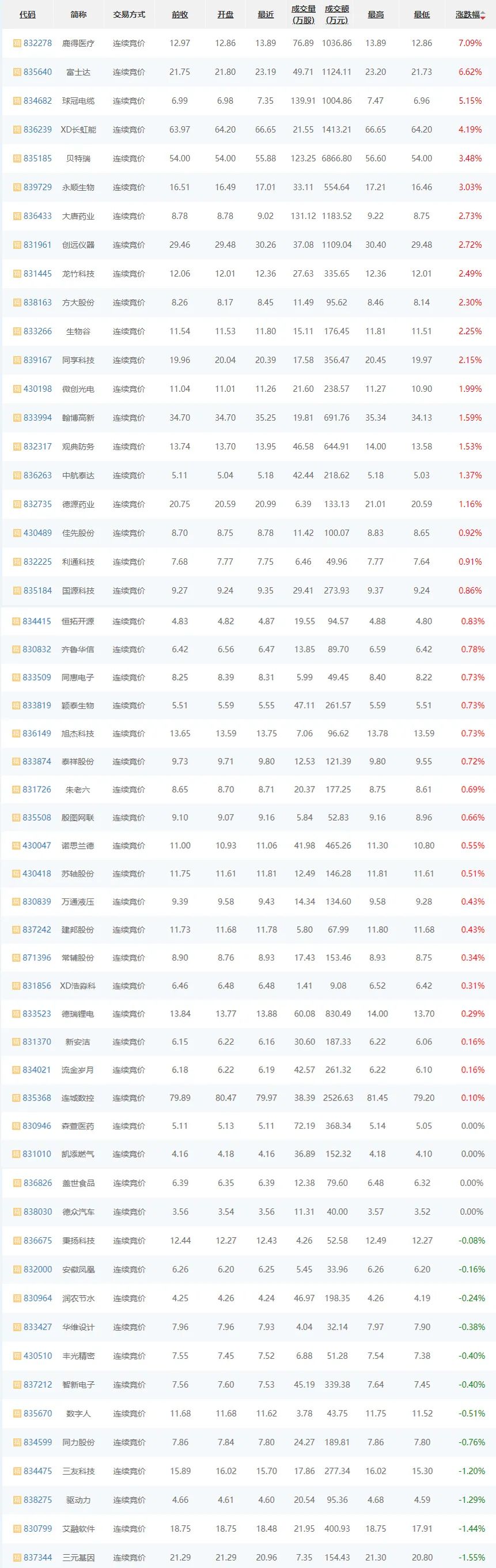 6月18日,精选层大涨,58家企业上涨,4家平盘,12家下跌。其中,鹿德医疗(832278)上市首日涨幅居首,上涨7.09%;其次,富士达(835640)上涨6.62%;三元基因(837344)跌幅居首,下跌1.55%;艾融软件(830799)居次下跌1.44%;森萱医药(830946)、凯添燃气(831010)等平盘。