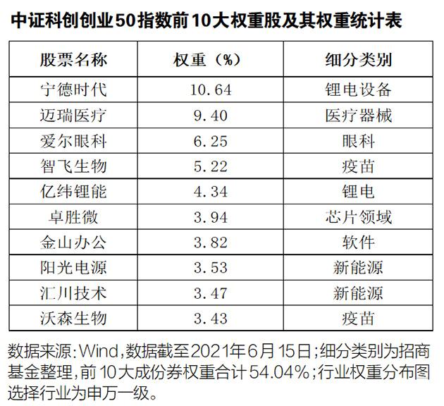 据了解,招商中证科创创业50 ETF的标的指数从科创板和创业板中选取市值较大的50只新兴产业上市公司作为指数样本,作为A股科技的代表,科创板+创业板肩负着为科技企业赋能的使命,中证科创创业50指数能较好实现沪深两市“科技强者”的结合,实现沪深两市“科技强者”的结合,堪称A股“硬核科技”的集大成者。从指数行业分布看,Wind数据显示,截至6月10日,该指数前五大权重行业分布在医药生物、电气设备、电子、计算机、机械设备中,这些行业科技成色十足。从指数调整周期看,不同于普通宽基指数每半年调整一次样本股,中证科创创业50指数每季度调整一次,加快成分股优胜劣汰的速度,保持指数良好的生命力。
