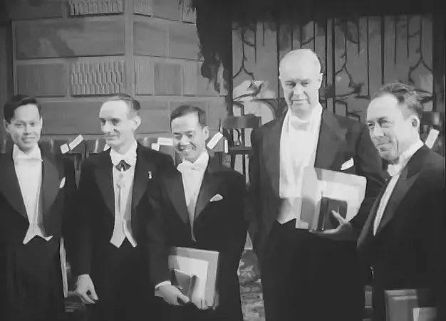 1957年,杨振宁(左一)与李政道(左三)获诺贝尔物理学奖。两人均为西南联大学生。(资料图/图)