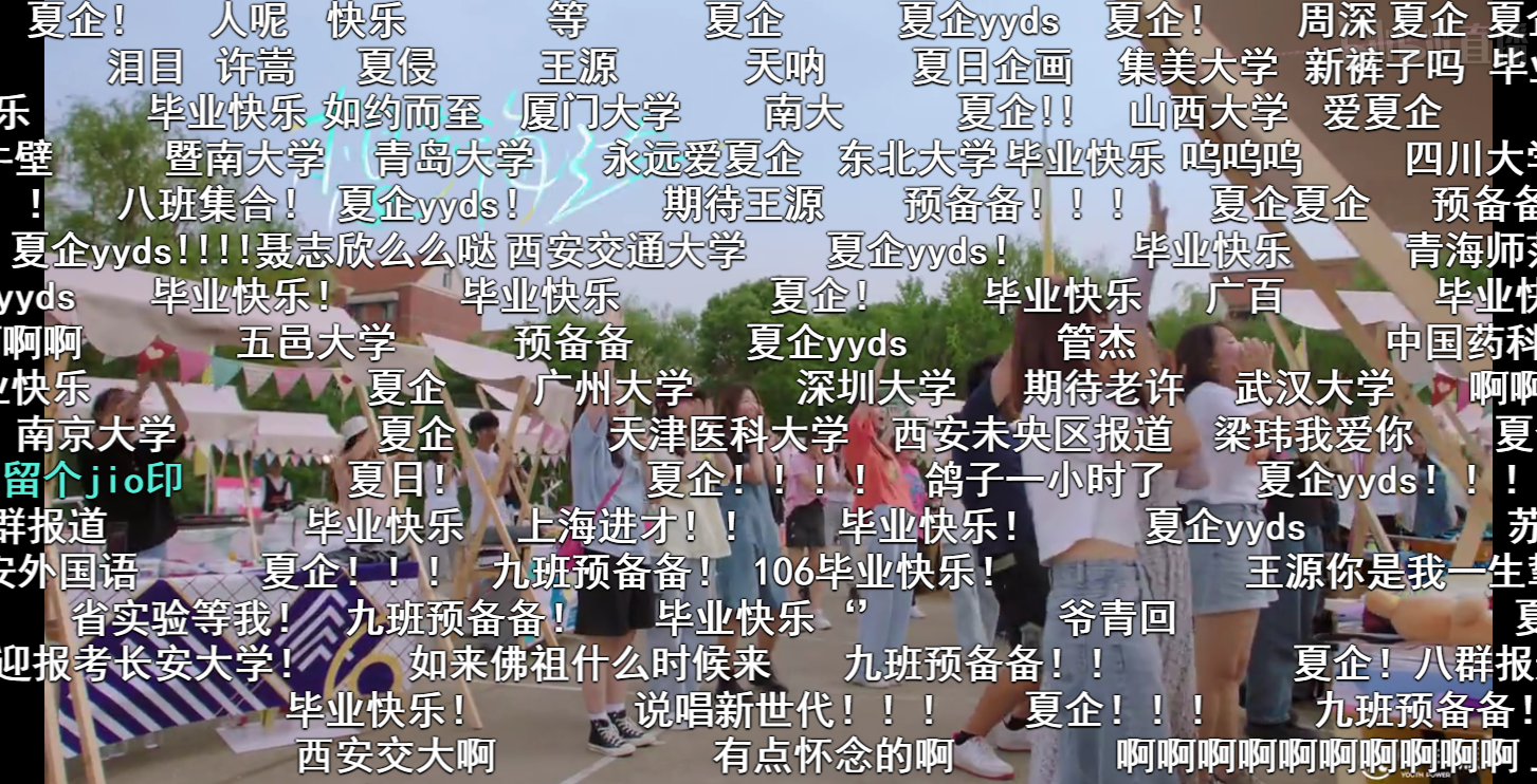 6月20日,B站夏日毕业歌会直播页面,满屏的“川大代表队集合”、“东北大学报道”、“广州大学到此一游”、“2021毕业快乐”的弹幕铺面而来,躁动的青春,美好的憧憬,不舍与忐忑,激情和迷茫。
