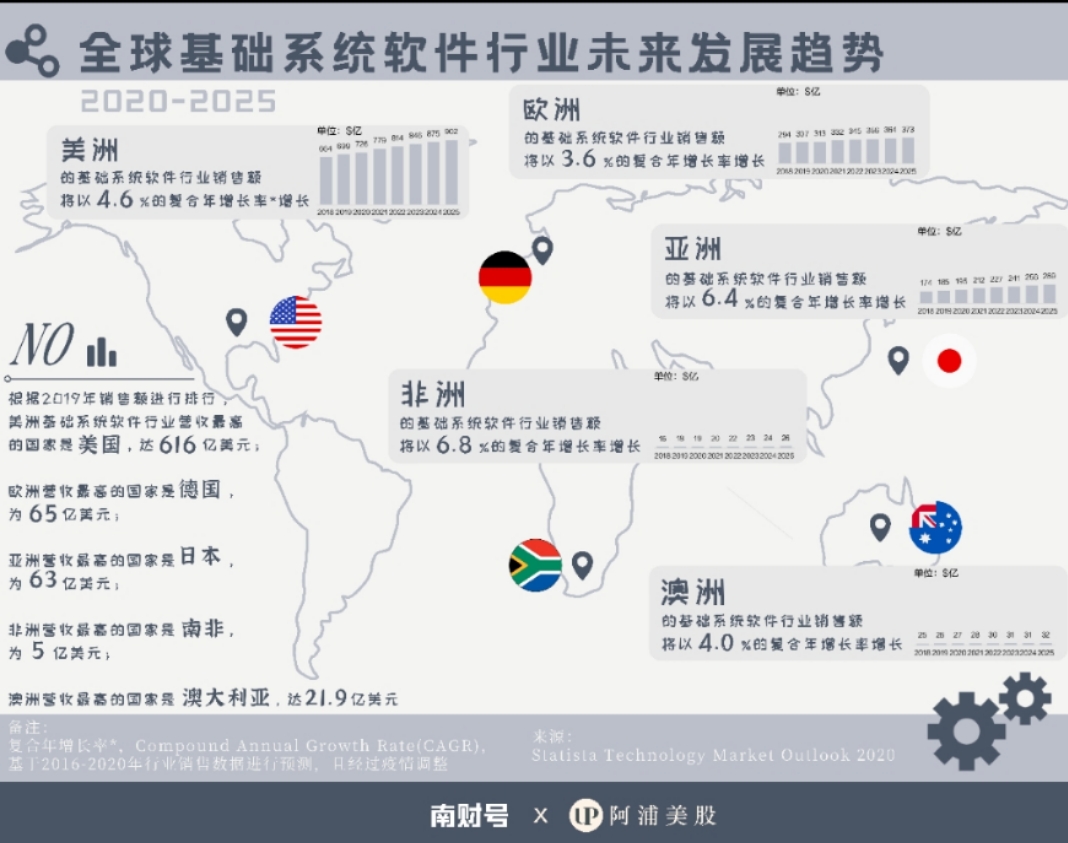 全球基础系统软件行业未来发展迅速,年复合增长率较高,但全球各地发展很不平衡,南北差异巨大。本文解读2020-2025行业未来发展趋势。
