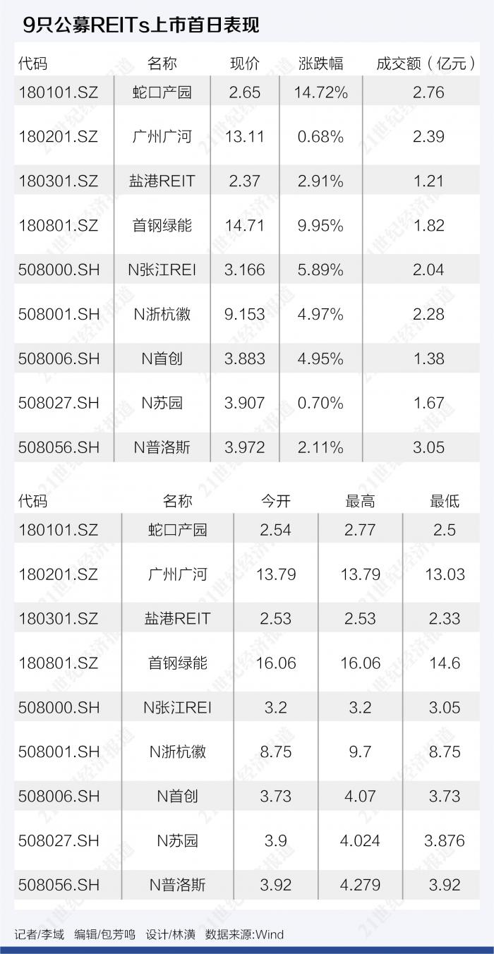 6月21日,公募REITs迎来上市首秀。