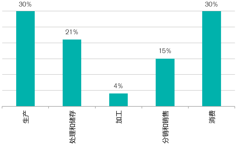 图3:全球粮食损失和浪费总量在供应链上的分布情况