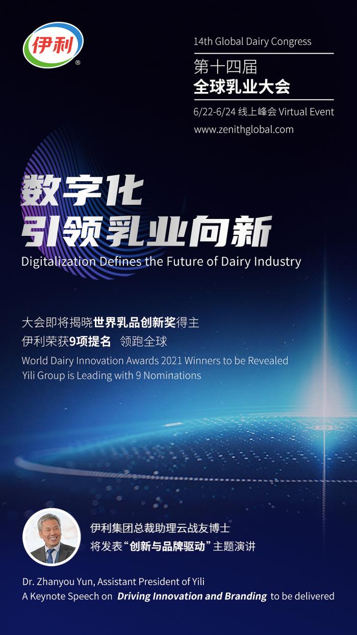 2021年,第14届全球乳业大会(Global Dairy Congress)线上峰会即将于伦敦时间6月22日正式开幕。作为受邀出席的中国乳企,伊利集团总裁助理云战友博士将在行业领袖分论坛上发表 “创新与品牌驱动”的主题演讲,与全球共享伊利在数字化创新领域的积极实践。同时,大会也将现场揭晓2021年世界乳品创新奖,在已公布的入围名单中,伊利凭借领先的创新硬核实力成功获得九项提名,领跑全球乳品企业。