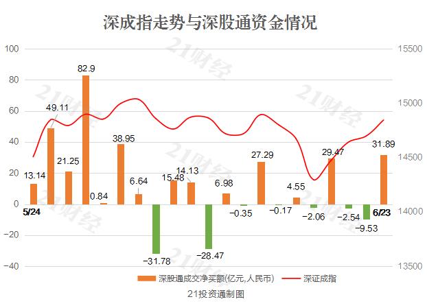 据21投资通(微信号ID:touzit21)智能监测,北向资金今日净买入81.99亿元,结束连续3日净卖出,创近一个月新高。其中沪股通净买入50.10亿元,深股通净买入31.89亿元。