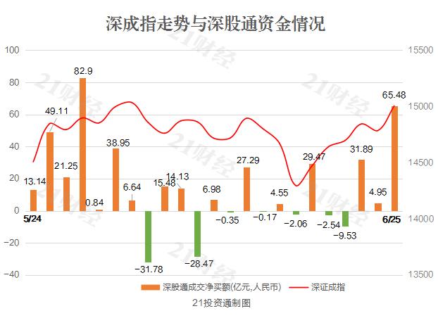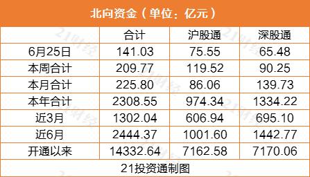 据21投资通(微信号ID:touzit21)智能监测,北向资金今日净买入141.03亿元,再创一个月新高;其中沪股通净买入75.55亿元,深股通净买入65.48亿元。
