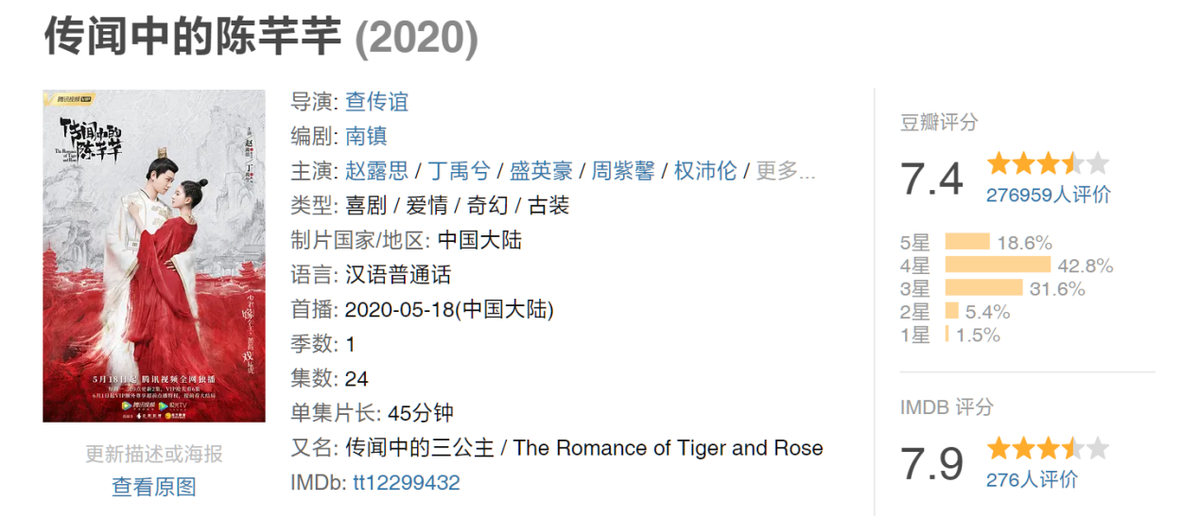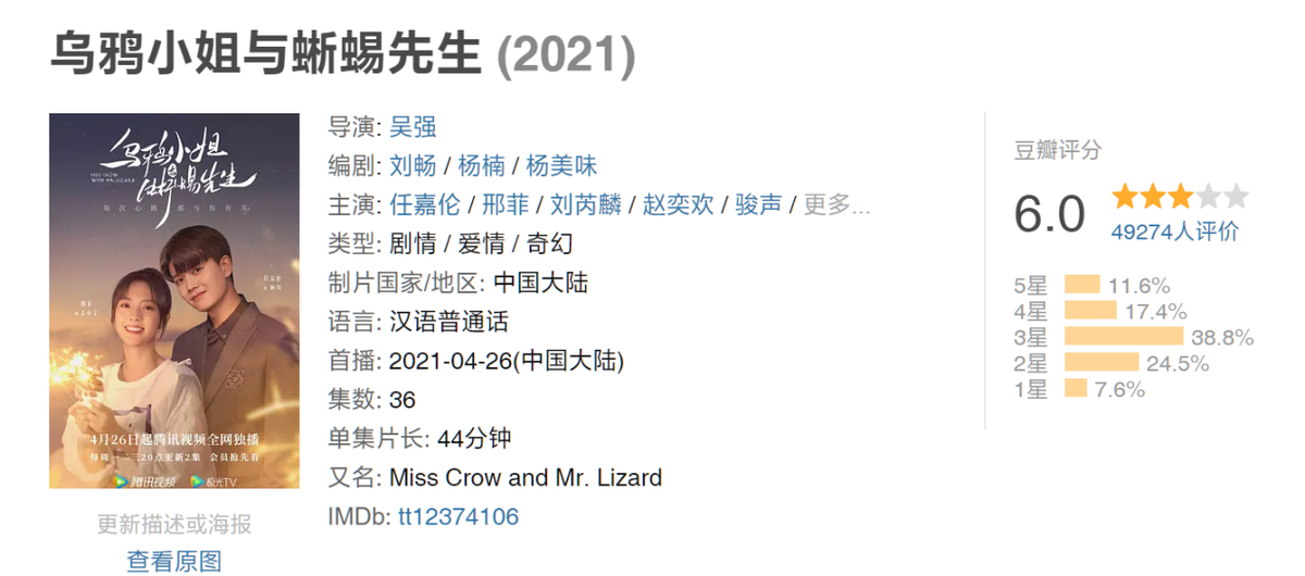 去年火出圈的几部甜宠爆款剧,《冰糖炖雪梨》《我,喜欢你》《传闻中的陈芊芊》热度指数分别为87.98、80.95、79.98,但今年到目前为止,仅有《良辰美景好时光》《月光变奏曲》《乌鸦小姐与蜥蜴先生》《一不小心捡到爱》四部戏热度超过70——同时它们的豆瓣评分远没有达到之前爆款的水平,热搜出圈程度也缺乏亮点。