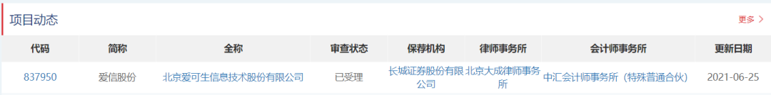 6月25日,爱信股份(837950)精选层申报材料获全国股转公司受理,保荐机构为长城证券。