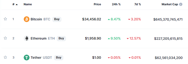 周一早盘,比特币涨幅扩大,短线走高日内涨超8%,至34455美元/枚。自上周以来,资产管理公司对比特币期货的多头押注增加了35%,自2020年第四季度以来首次超过500份合约。投资者在2020年秋季和12月的大部分时间都做多,但今年几乎全年都在做空。