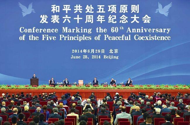 2014年6月28日,和平共处五项原则发表60周年纪念大会在人民大会堂举行,中国国家主席习近平出席大会并发表题为《弘扬和平共处五项原则 建设合作共赢美好世界》的主旨讲话,深刻地阐述了和平共处五项原则的历史性贡献和重大现实意义。