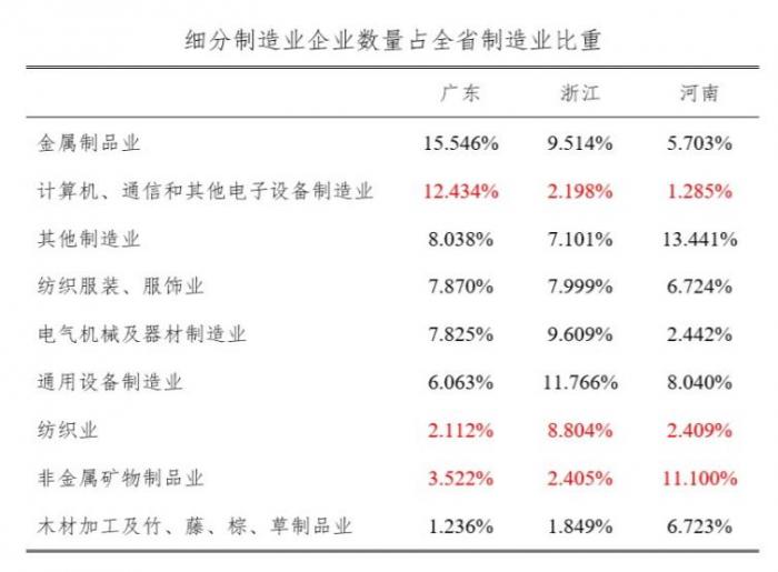 董耀徽表示,为什么广东出现订单减少或取消的企业比例如此之高?主要是由本身的产业特性导致的。比如,广东的计算机、通信和其他电子设备制造业的占比是12.4%,浙江和河南分别只有2.2%和1.3%。