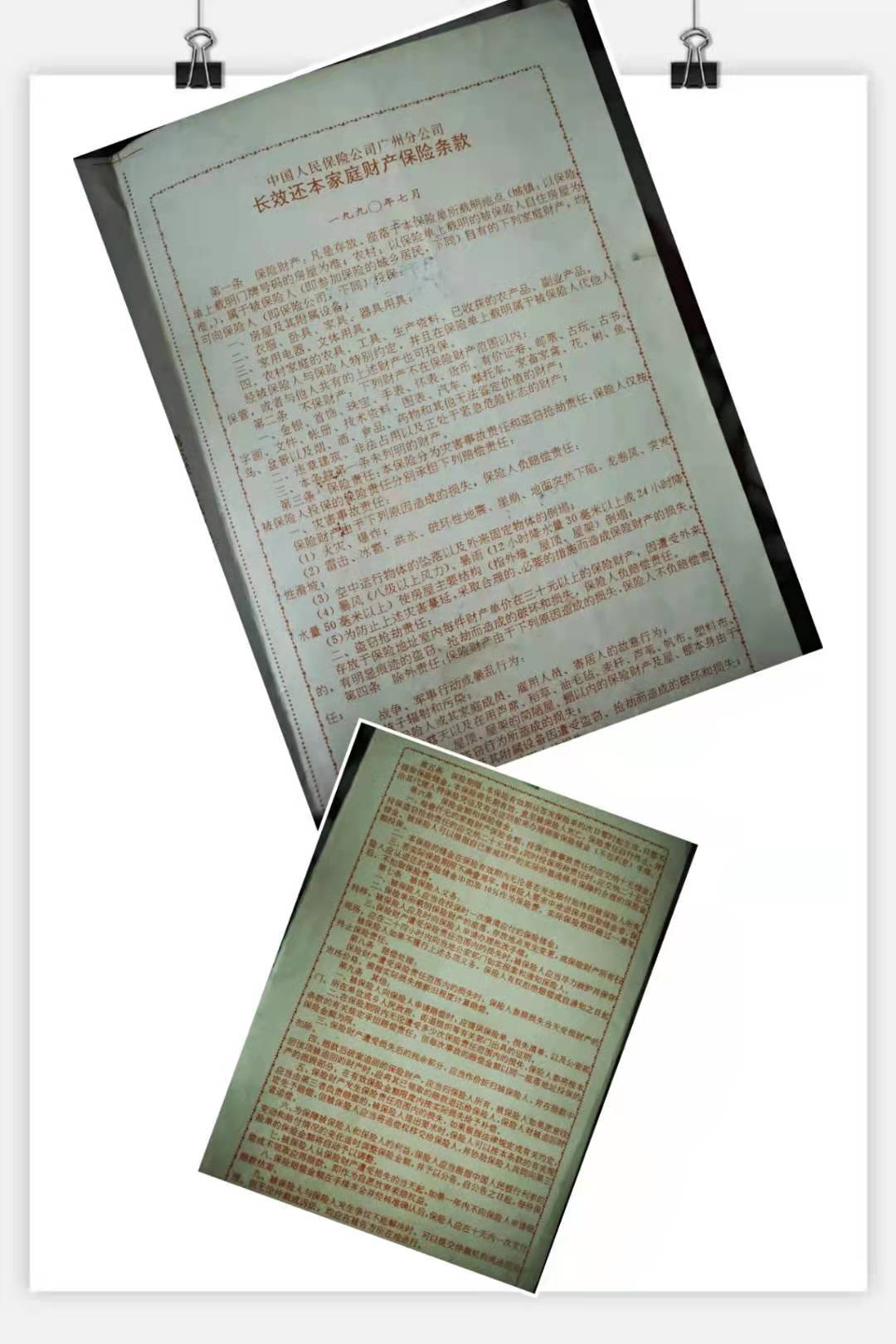 有一张30年前的财产保单就非常有意思,除了保障家财外,还约定了如果保障的家财无发生风险且投保人去世,可领回保险储金。这一点跟现在的财产保险大不相同。
