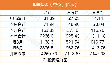 北向资金已连续两日净流出,合计净流出71亿元左右。越声理财认为,流出额度与6月23日至25日三天扫货254亿元相比,流出幅度并不算大。只要不是持续性净流出或者是单日流出超百亿,北向资金这种小幅净流出对市场的影响比较有限。