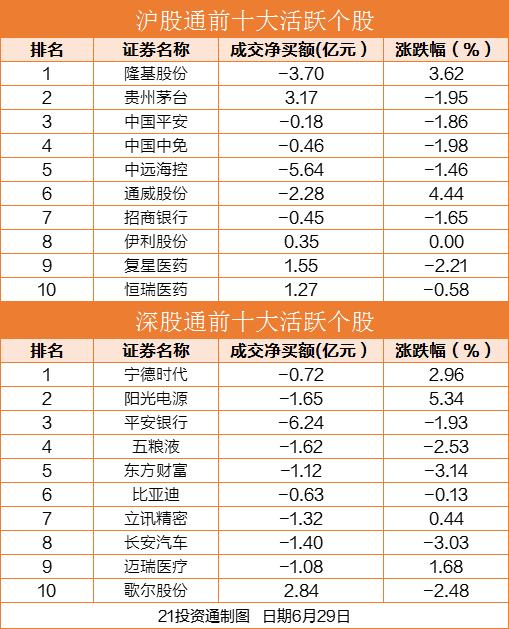 十大活跃股方面,平安银行、中远海控、隆基股份分别遭净卖出6.24亿元、5.64亿元、3.7亿元;贵州茅台获净买入3.17亿元。