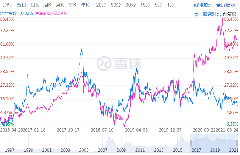 地产指数与沪深300对比 来源 网络截图