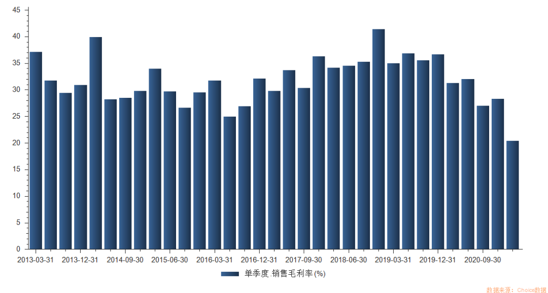 万科的销售毛利率 来源 Choice