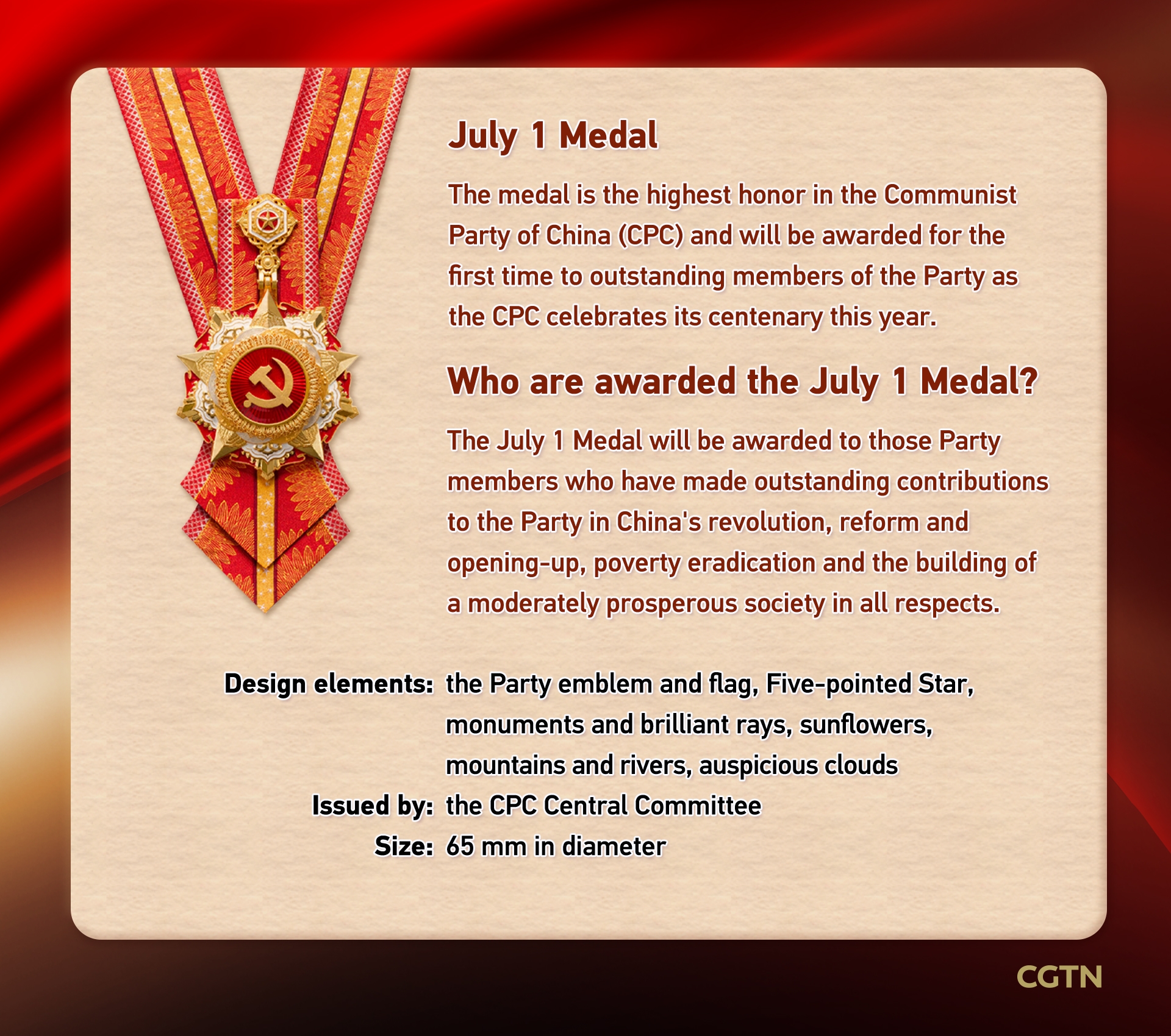 As part of the celebrations of the 100th anniversary of the founding of the Communist Party of China (CPC), a ceremony to present the July 1 Medal to outstanding CPC members was held in Beijing on Tuesday morning. President Xi Jinping, also general secretary of the CPC Central Committee and chairman of the Central Military Commission, presented the July 1 Medal to 29 awardees.
