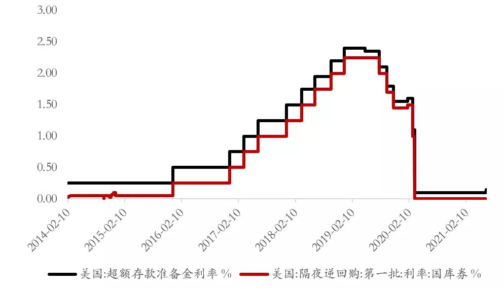 联储此次上调了利率走廊区间,将超额准备金利率IOER和隔夜逆回购利率ONRRP(分别为利率走廊的上下限)区间从0%-0.1%上调至0.05%-0.15%,以支持有效的政策实施和短期美元融资市场的平稳运行。