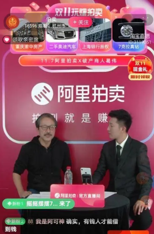 去年双11期间葛伟还曾做客淘宝的直播间,凭借过往的创业经验,向大家推荐了阿里拍卖平台里的好几款标的物和优质股权拍卖。