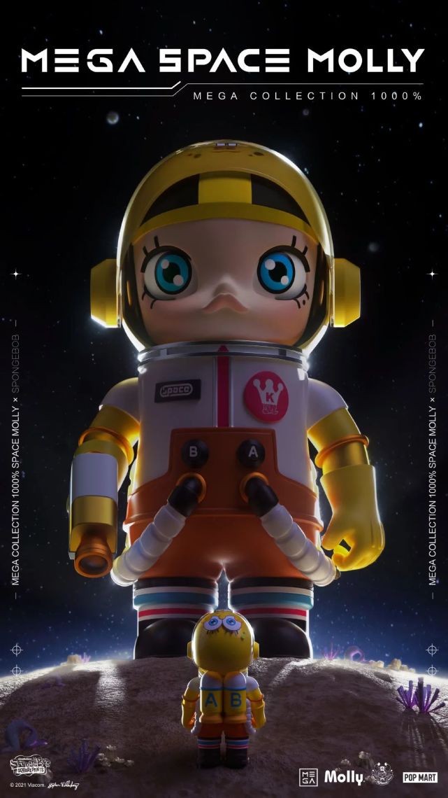 热衷于盲盒玩具的泡泡玛特,开始进军到了高端潮玩市场。最近,泡泡玛特瞄准了年轻人对于潮玩愈发强烈的收藏需求,推出了“MEGA珍藏系列1000% SPACE MOLLY×海绵宝宝”和“MEGA珍藏系列 400% SPACE MOLLY×海绵宝宝”两款不同尺寸的手办。