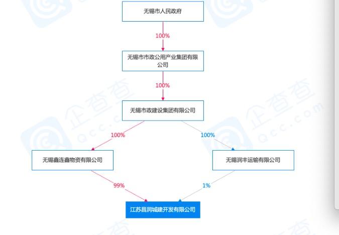 工商登记信息显示,江苏昌润城建开发有限公司于2006年成立,注册资本5000万,主营范围为市政工程、环保工程、水利工程、园林绿化的施工等。其股权结构图如下: