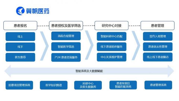 依托水滴在线上线下的数百万重症患者人群,及医患服务网络,结合平台智能系统与大数据能力,翼帆医药招募平台升级传统招募模式,以开放性的线上平台打通医患之间的信息连接,同时以线下陪伴式的面对面服务确保患者的服务体验,为新药研发提供专业的招募及管理服务。