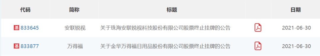 6月30日,新三板基础层公司安联锐视(833645)、万得福(833877)终止挂牌。