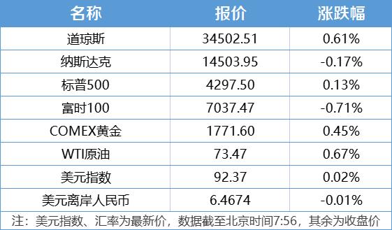 美股三大指数收盘涨跌不一,道指涨0.61%,上半年累涨12.73%;标普500指数涨0.13%,上半年累涨14.41%;纳指跌0.17%,上半年累涨12.54%。三大指数均为连续五个季度上涨。滴滴上市首日涨逾1%,盘中一度涨超20%,成交额超43亿美元;叮咚上市第二日涨超62%,盘中一度涨近100%。