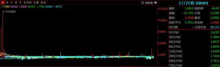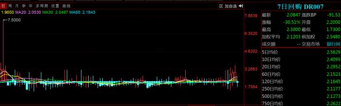 对资金最为敏感的存款类金融机构间的债券回购利率的表现也十分类似,DR001利率下行51个基点,报1.6381%。DR007则下跌100个BP,跌幅33.46%,报收1.9962%。