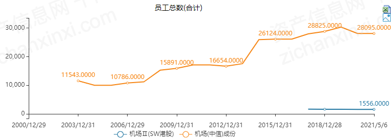截止2021年5月6日,机场板块(中信)沪深成分股个数为4,在近几年中呈稳定趋势。企业总市值在近几年呈上升趋势,2021年5月6日,企业总市值为1398.2924亿元,企业员工总数达28095人。
