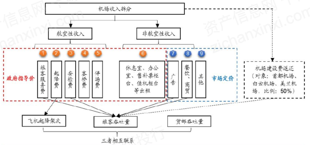 (1)北京首都机场股份[0694.HK]主要在北京首都机场经营和管理航空性业务及非航空性业务。公司的航空性业务包括:为中外航空运输企业提供飞机起降及旅客服务设施、地面保障服务和消防救援服务。公司的非航空性业务包括:以特许经营方式许可其他方在北京首都机场经营:i 为中外航空公司提供地面代理服务;ii 提供航班餐食配送服务;iii 经营航站楼内的免税店和其他零售商店;iv 经营航站楼内餐厅和其他餐饮业务;v 航站楼内、外的广告位出租以及其他业务。