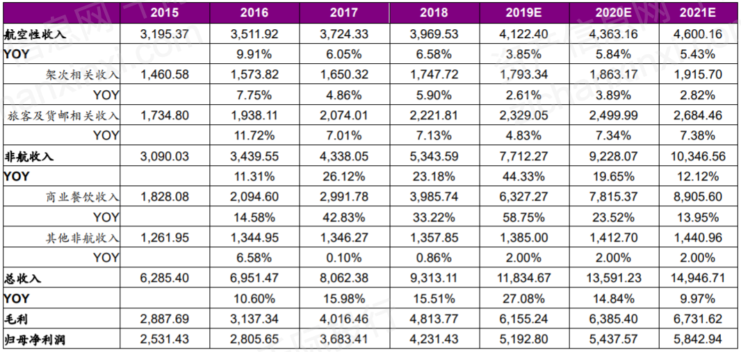 非航空类业务中,零售、广告、以及场地及设备的租金都占到了较大的比重。