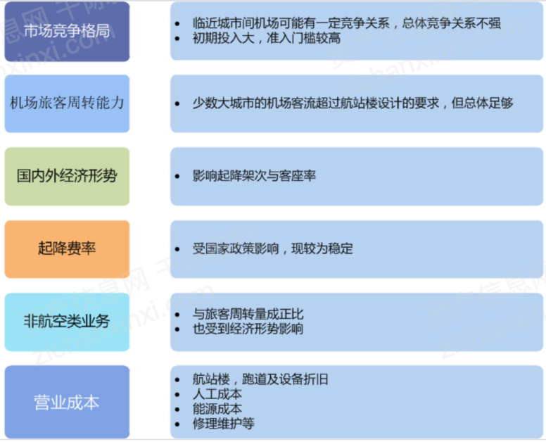 机场行业整体准入壁垒较高,行业内竞争激烈程度低。机场行业的准入壁垒主要体现在高投资额和严监管政策两方面。首先,机场作为重要的交通基础设施和城市对外的窗口,需要大量资金投入。同时,为了保证运输安全,机场同样需要配备高科技的导航、监控系统,因此,机场整体建设投资规模大。其次,机场建设属于交通运输基础设施建设,由政府主导,需要报送国务院、中央军委、民航局、海陆空等多方审批,有关价格受民航局和国家发改委管控。
