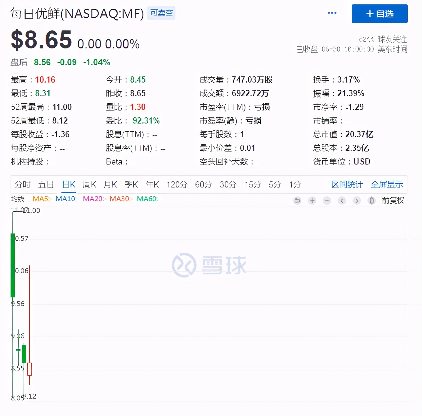 两个头部生鲜电商玩家上市后,两者在美股资本市场上的后续的发展却有些出乎意料。