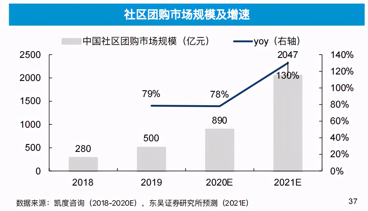 2020年,艾瑞咨询测算前置仓的GMV规模大约在337亿元左右,社区团购却因为美团、拼多多、京东等巨头的推进迅猛增长,2021年的预估GMV规模超过2000亿,一季度拼多多财报电话会议上,CEO陈磊更是强调了持续加注多多买菜业务的决心。
