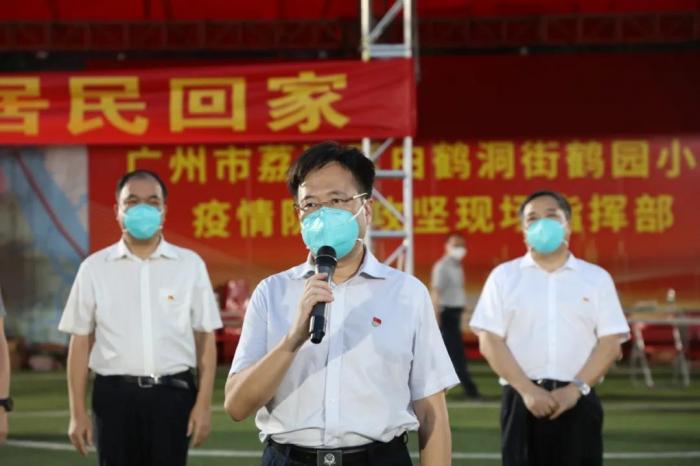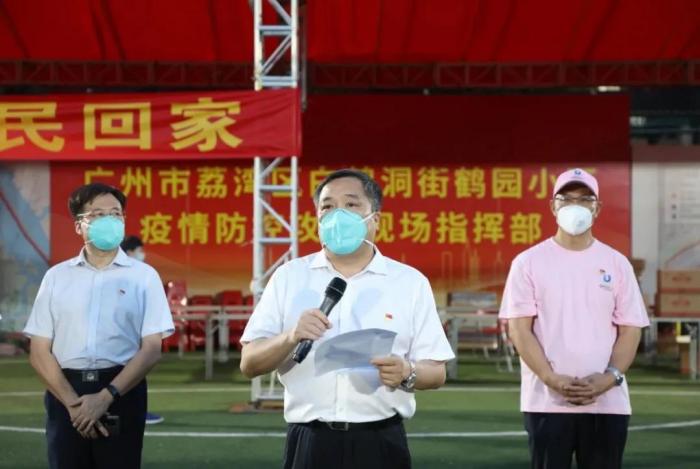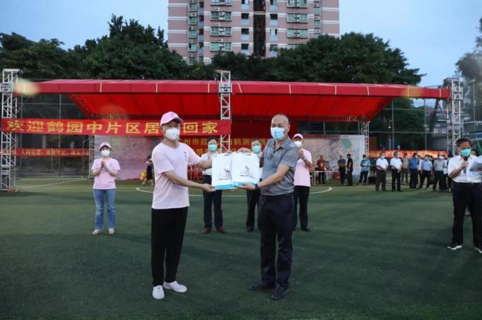 6月30日晚上7点半,“广电大白”化身“小粉”,齐聚鹤园社区足球场,共同举办简单而又暖心的“告别会”。广州市人大常委会党组副书记、副主任唐航浩,荔湾区委书记陈小华,荔湾区委副书记、区长毕锐明,荔湾区委副书记黄德辉,广州无线电集团党委副书记、总经理黄跃珍,广电城市服务党总支书记、总经理裴佳敏,骆驼集团副总经理胡京秋出席活动,广电城市服务战疫先锋队队员参会。